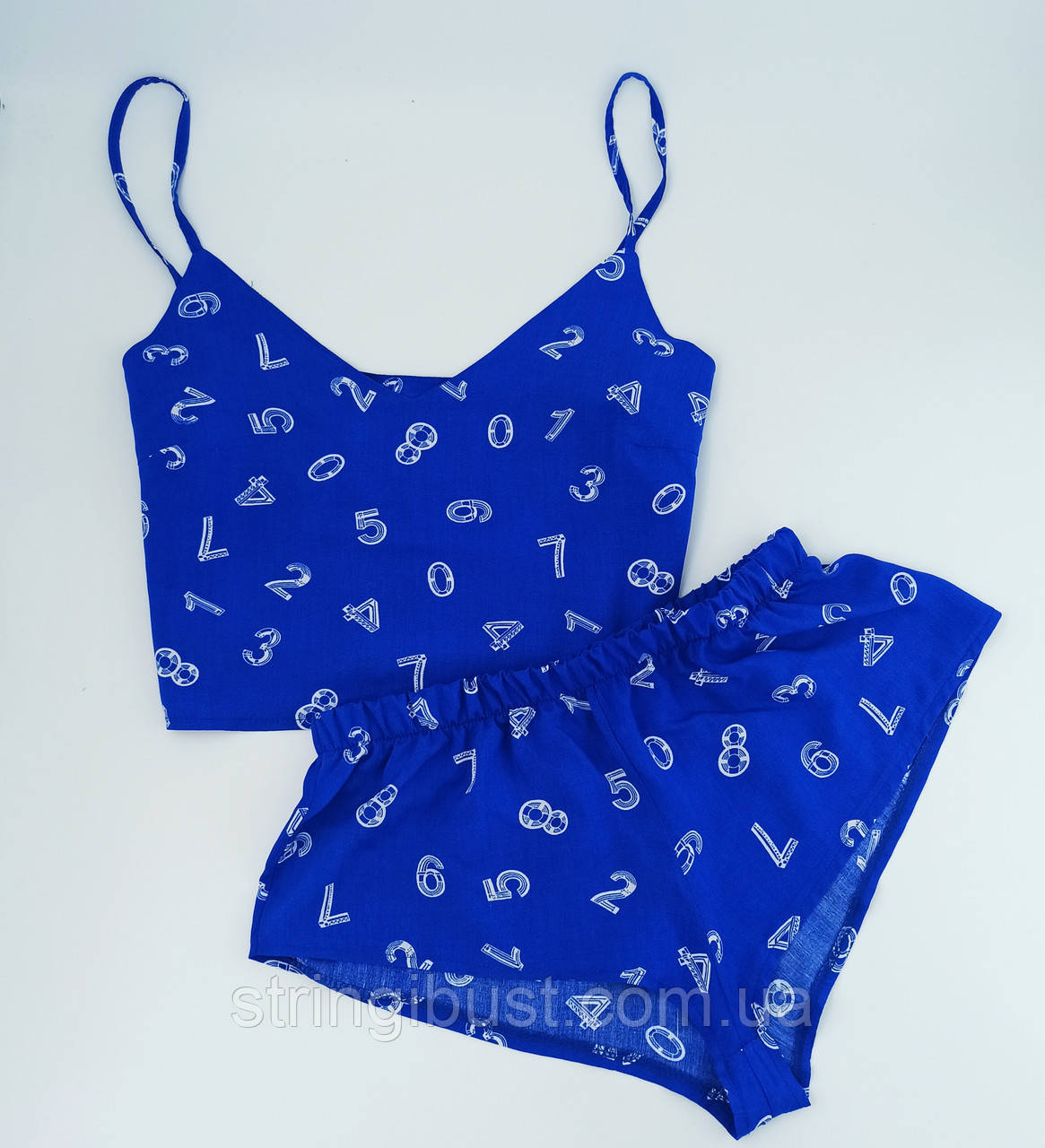 Комплект для дому та сну Exclusive топ і шортики софт S синій з білим (094)