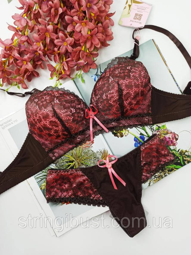 Комплект бюстгальтер + стриги Velencosa без кісточки 75B коричневий з рожевим (494)